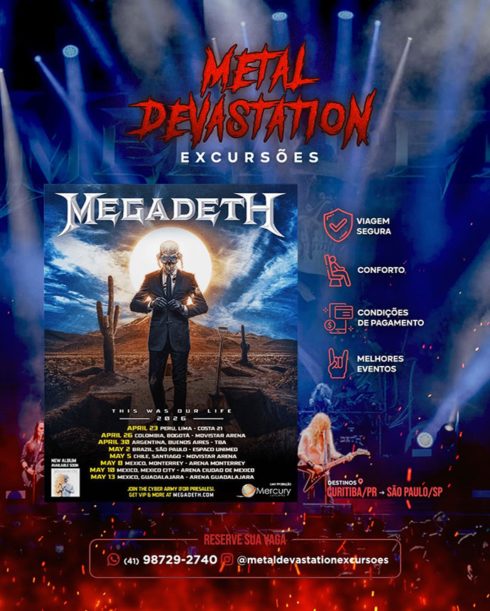 VIAGEM SEGURA CONFORTO CONDIÇÕES DE PAGAMENTO MELHORES EVENTOS PRÓXIMAS EXCURSÕES MAYHEM + KANONENFIEBER 07/12/2025 comprar AC/DC 24/02, 28/02 e 04/03/2026 comprar OTACÍLIO ROCK FESTIVAL 07 E 08/03/2026 comprar MONSTERS OF ROCK 04/04/2026 comprar MEGADETH 02/05/2026 comprar KORN 16/05/2026 comprar BRUTAL ASSAULT 2026 De 31/07 à 11/08/2026 comprar BENEFÍCIOS EXCLUSIVOS BENEFÍCIOS EXCLUSIVOS FIDELIDADE A cada 10 viagens você ganha 1 viagem grátis INDIQUE UM AMIGO Ganhe 10% de desconto a cada amigo indicado por você para viajar com a excursão pela primeira vez SORTEIO FIM DE ANO Todos que viajarem conosco durante o ano, participarão do sorteio para concorrer a uma viagem de sua escolha em qualquer excursão futura DEPOIMENTOS DE NOSSOS CLIENTES